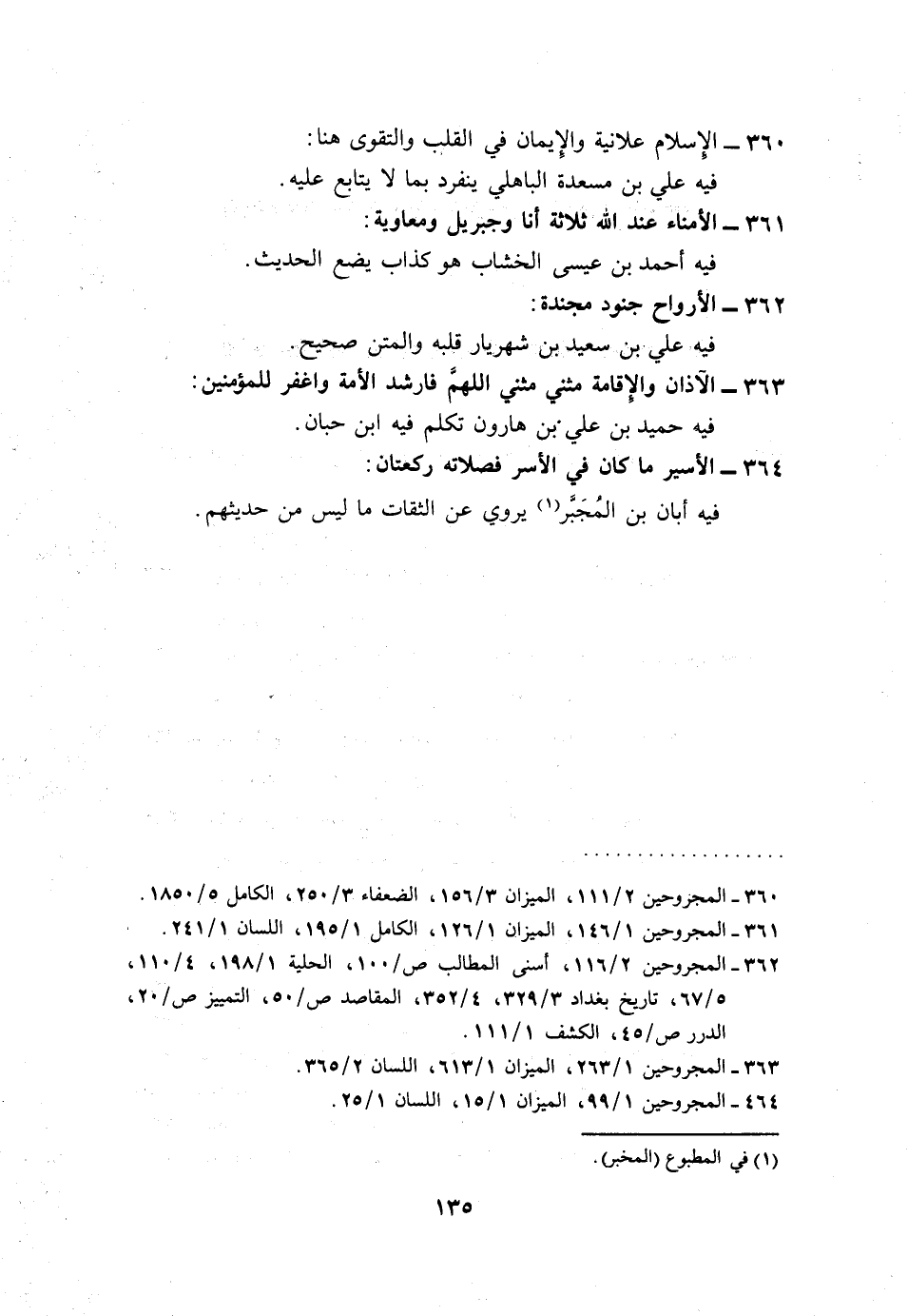 364 - الْأَسير مَا كَانَ فِي الْأسر فَصلَاته رَكْعَتَانِ: فِيهِ أبان بن الْمُجبر يروي عَن الثِّقَات مَا لَيْسَ من حَدِيثهمْ.