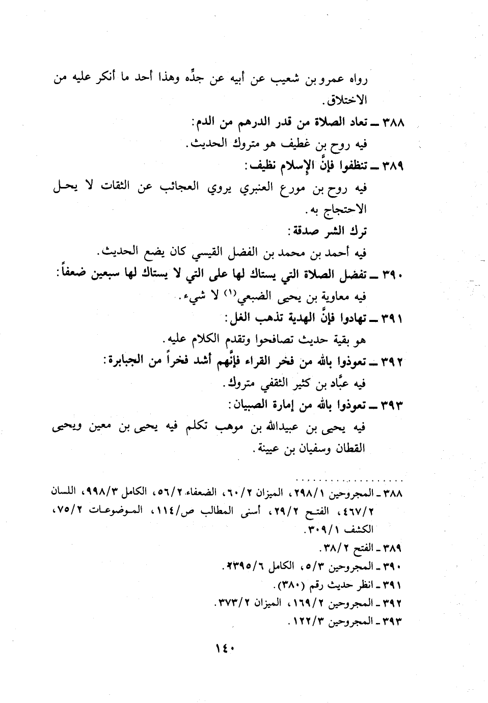 388 - تُعَاد الصَّلَاة فِي قدر الدِّرْهَم من الدَّم: فِيهِ روح بن غطيف هُوَ مَتْرُوك الحَدِيث.
