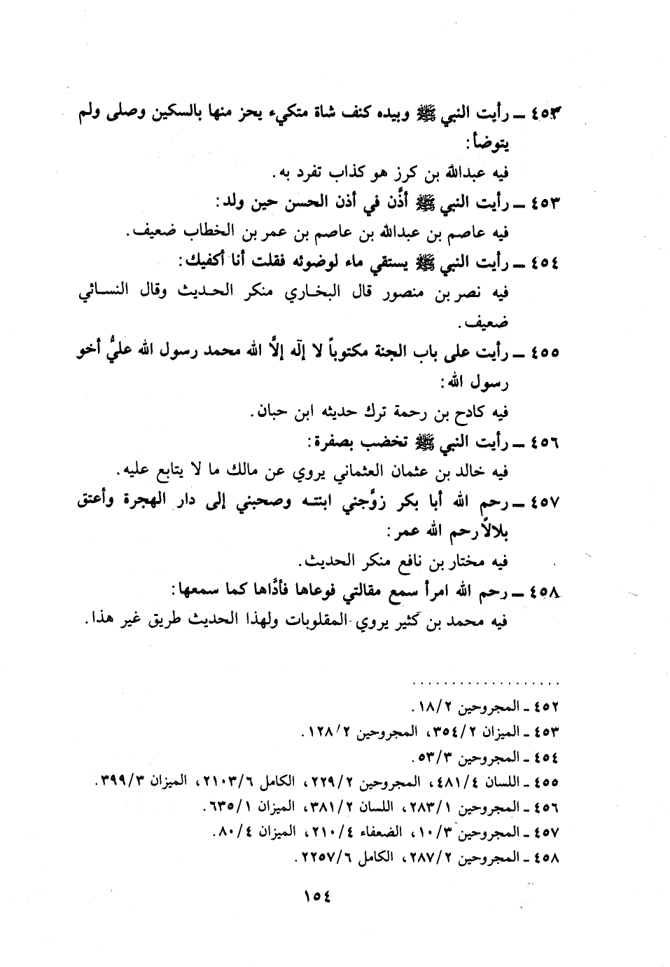 454 - رَأَيْت النَّبِي صلى الله عَلَيْهِ وَسلم يَسْتَقِي مَاء لوضوئه فَقلت أَنا أكفيك: فِيهِ نصر بن مَنْصُور قَالَ البُخَارِيّ مُنكر الحَدِيث وَقَالَ النَّسَائِيّ ضَعِيف.