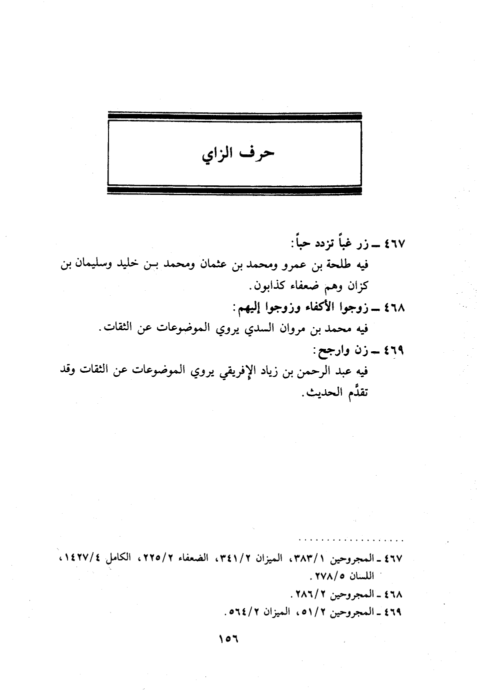 467 - زر غبا تَزْدَدْ حبا: فِيهِ طَلْحَة بن عَمْرو وَمُحَمّد بن عُثْمَان وَمُحَمّد بن خُلَيْد وَسليمَان بن كزان وهم ضعفاء كذابون.