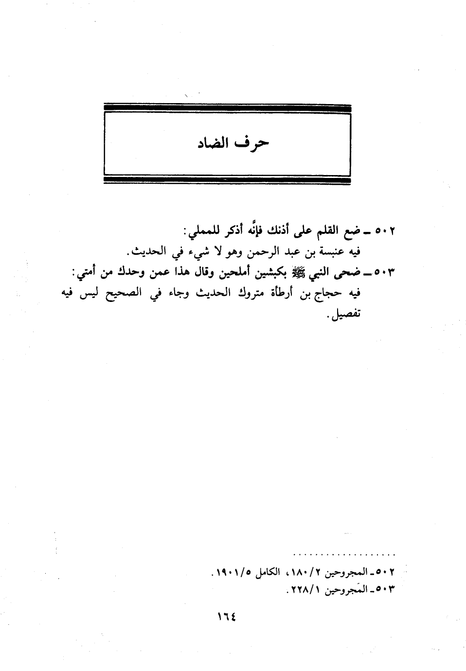 503 - ضحى النَّبِي صلى الله عَلَيْهِ وَسلم بكبشين أملحين وَقَالَ هَذَا عَمَّن وَحدك من أمتِي: فِيهِ حجاج بن أطأة مَتْرُوك الحَدِيث وَجَاء فِي الصَّحِيح لَيْسَ فِيهِ تَفْصِيل.