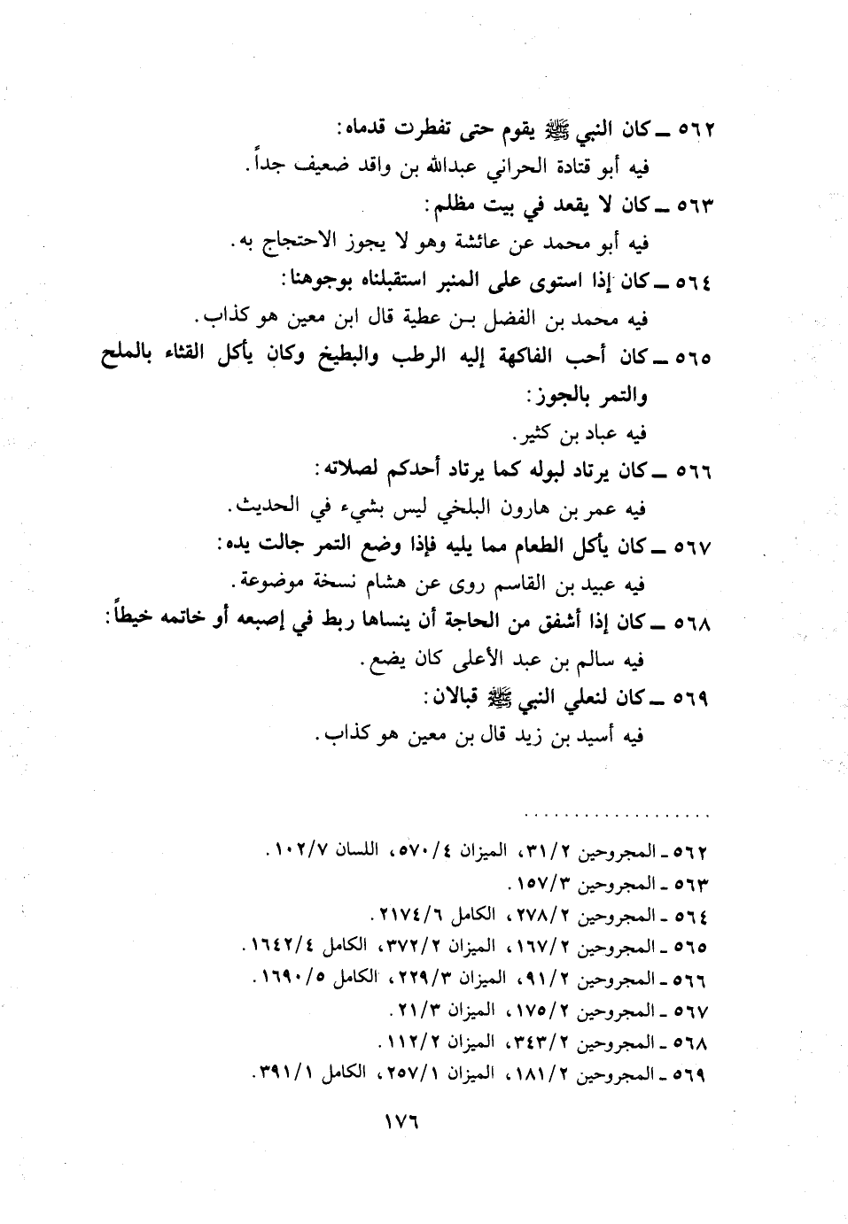 563 - كَانَ لَا يقْعد فِي بَيت مظلم: فِيهِ أَبُو مُحَمَّد عَن عَائِشَة وَهُوَ لَا يجوز الِاحْتِجَاج بِهِ.