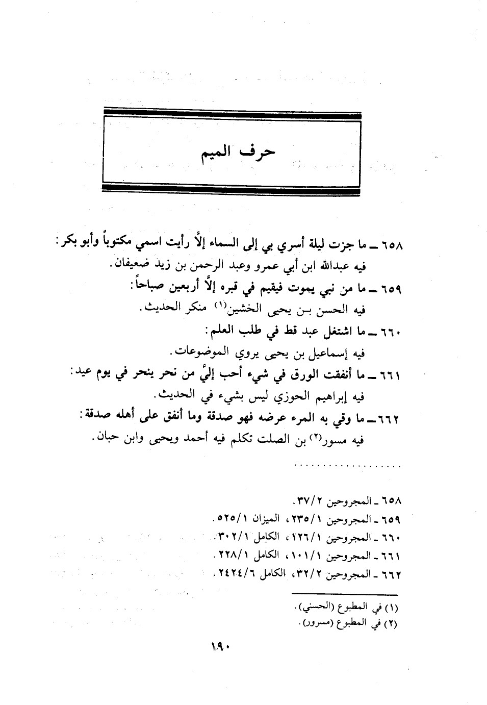 661 - مَا أنفقت الْوَرق فِي شَيْء أحب إِلَيّ من نحر ينْحَر فِي يَوْم عيد: فِيهِ إِبْرَاهِيم الْحَوْزِيِّ لَيْسَ بِشَيْء فِي الحَدِيث.