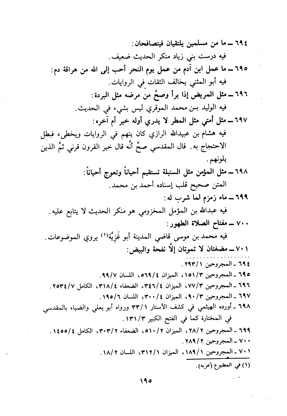 700 - مِفْتَاح الصَّلَاة الطّهُور: فِيهِ مُحَمَّد بن مُوسَى قَاضِي الْمَدِينَة أَبُو غزيَّة يروي الموضوعات.