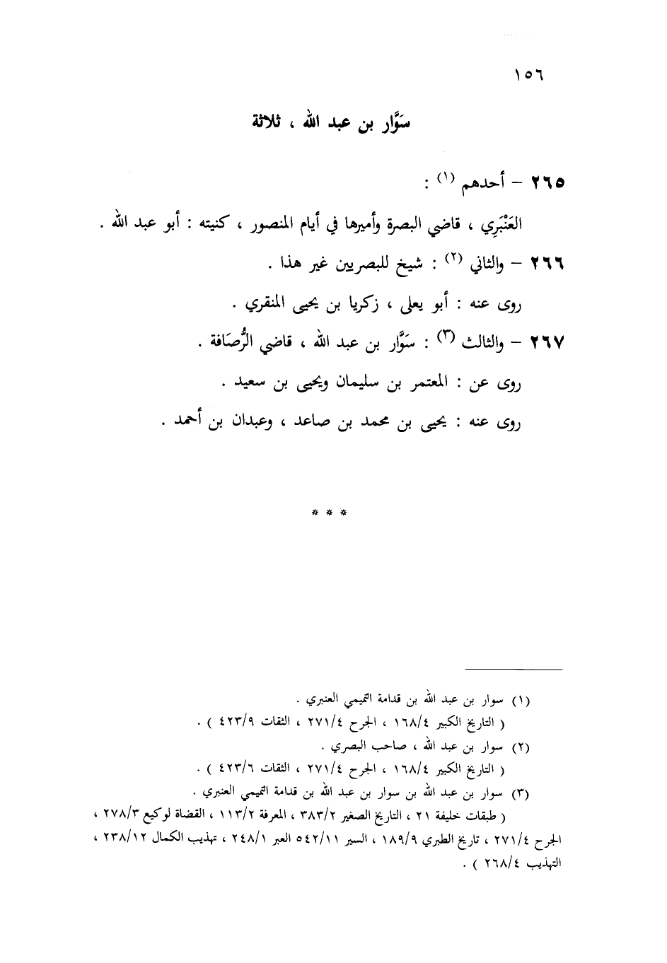 267 - وَالثَّالِث سوار بن عبد الله قَاضِي الرصافة