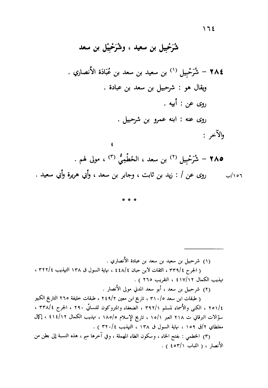 284 - شُرَحْبِيل بن سعيد بن سعد بن عبَادَة الْأنْصَارِيّ