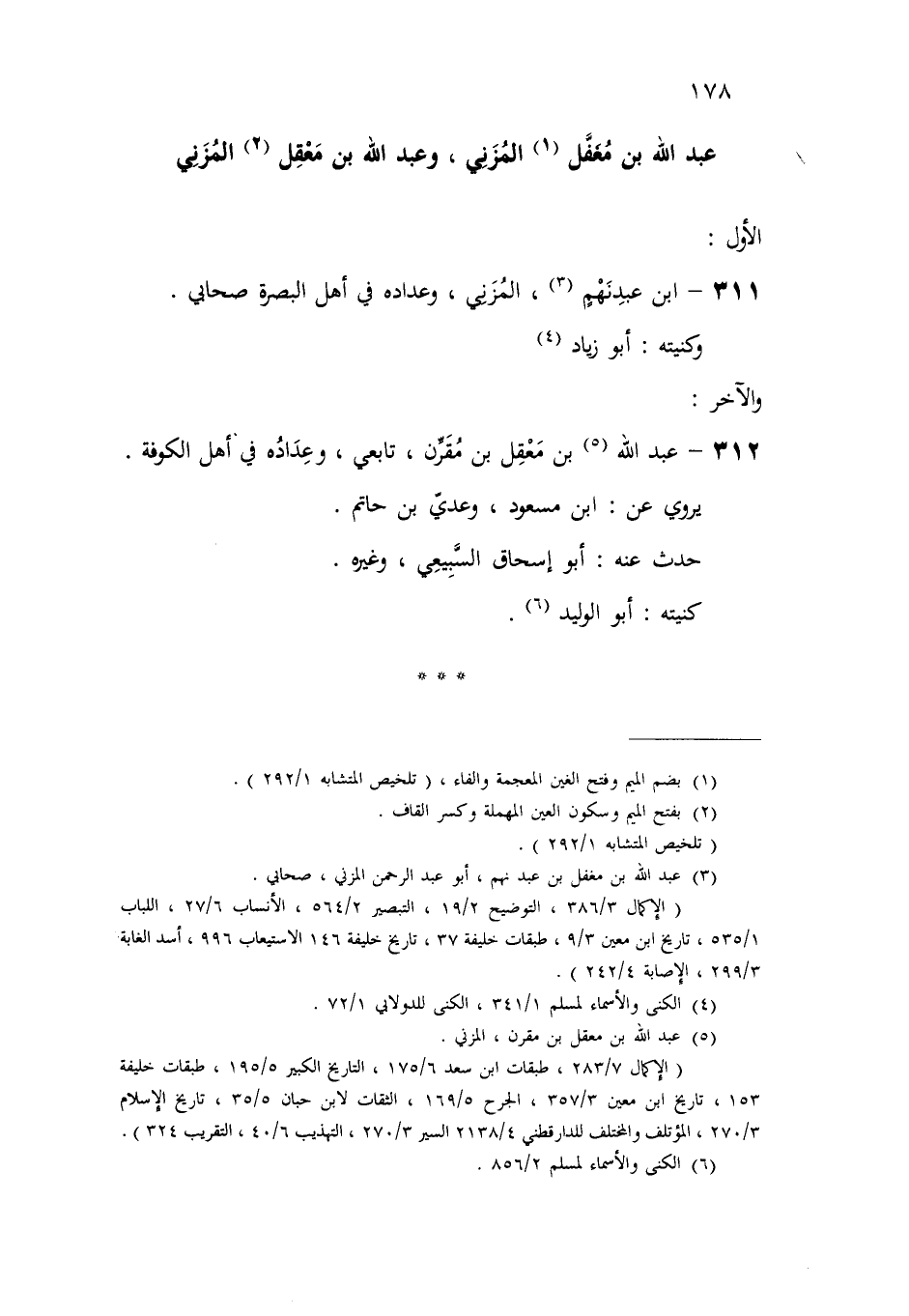 312 - عبد الله بن معقل بن مقرن تَابِعِيّ وعداده فِي أهل الْكُوفَة