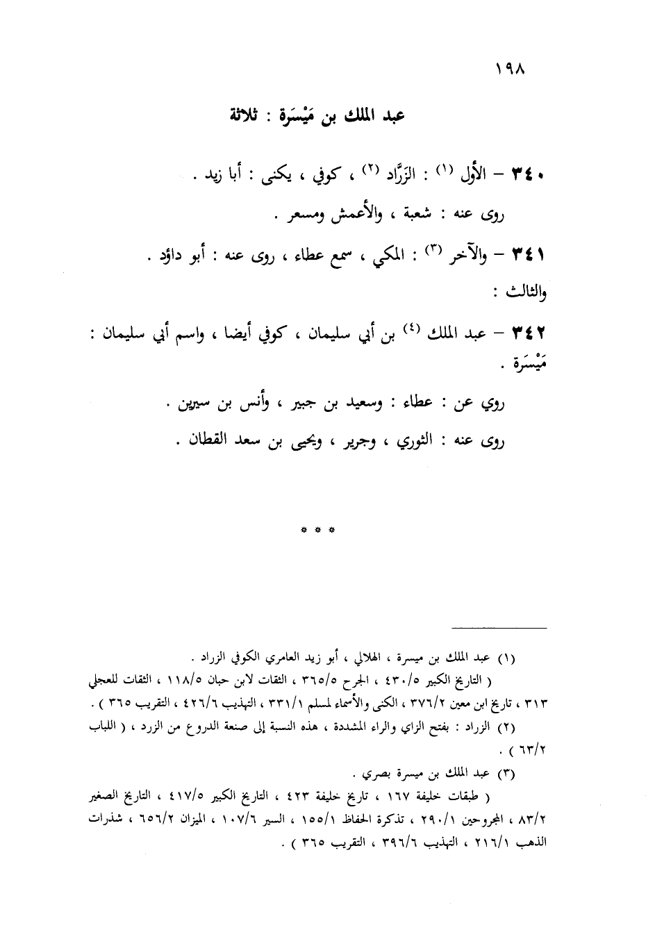 342 - عبد الملك بن أبي سُلَيْمَان كُوفِي أَيْضا وَاسم أبي سُلَيْمَان ميسرَة