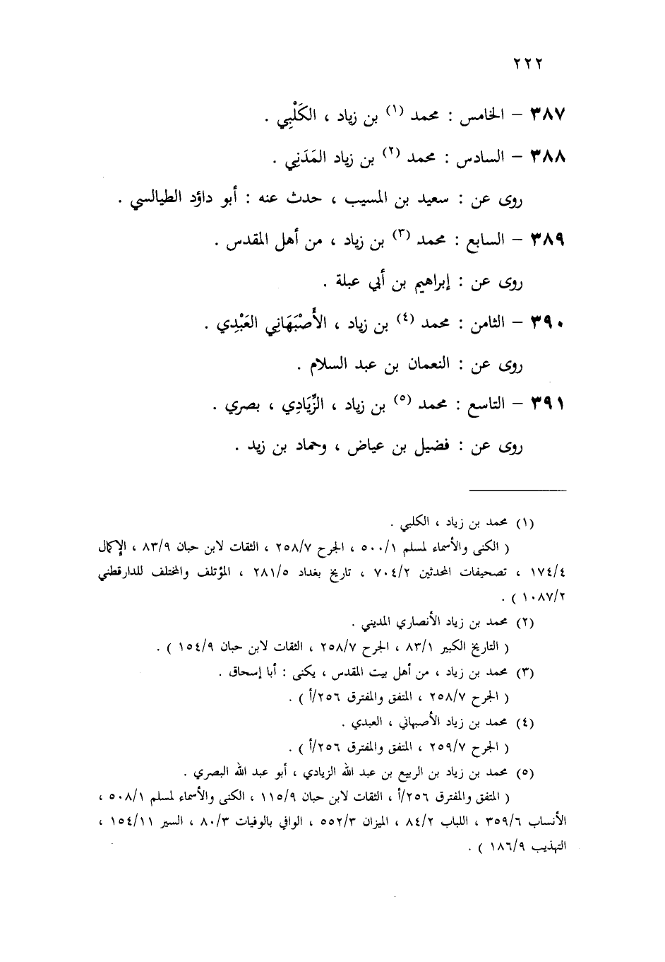 387 - الْخَامِس مُحَمَّد بن زِيَاد الْكَلْبِيّ