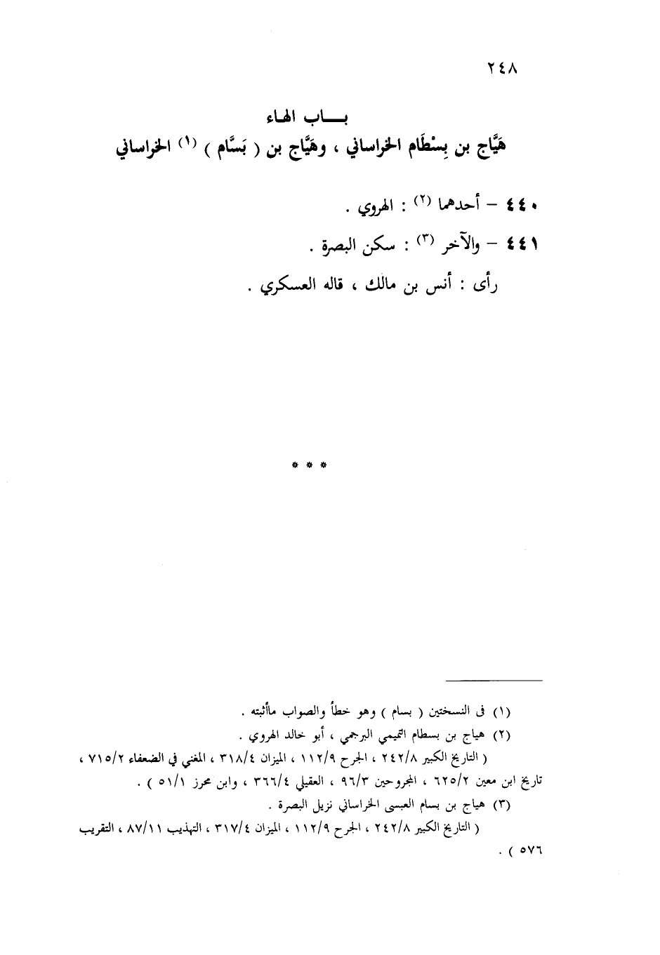 هياج بن بسطَام الْخُرَاسَانِي وَهياج بن بسام الْخُرَاسَانِي