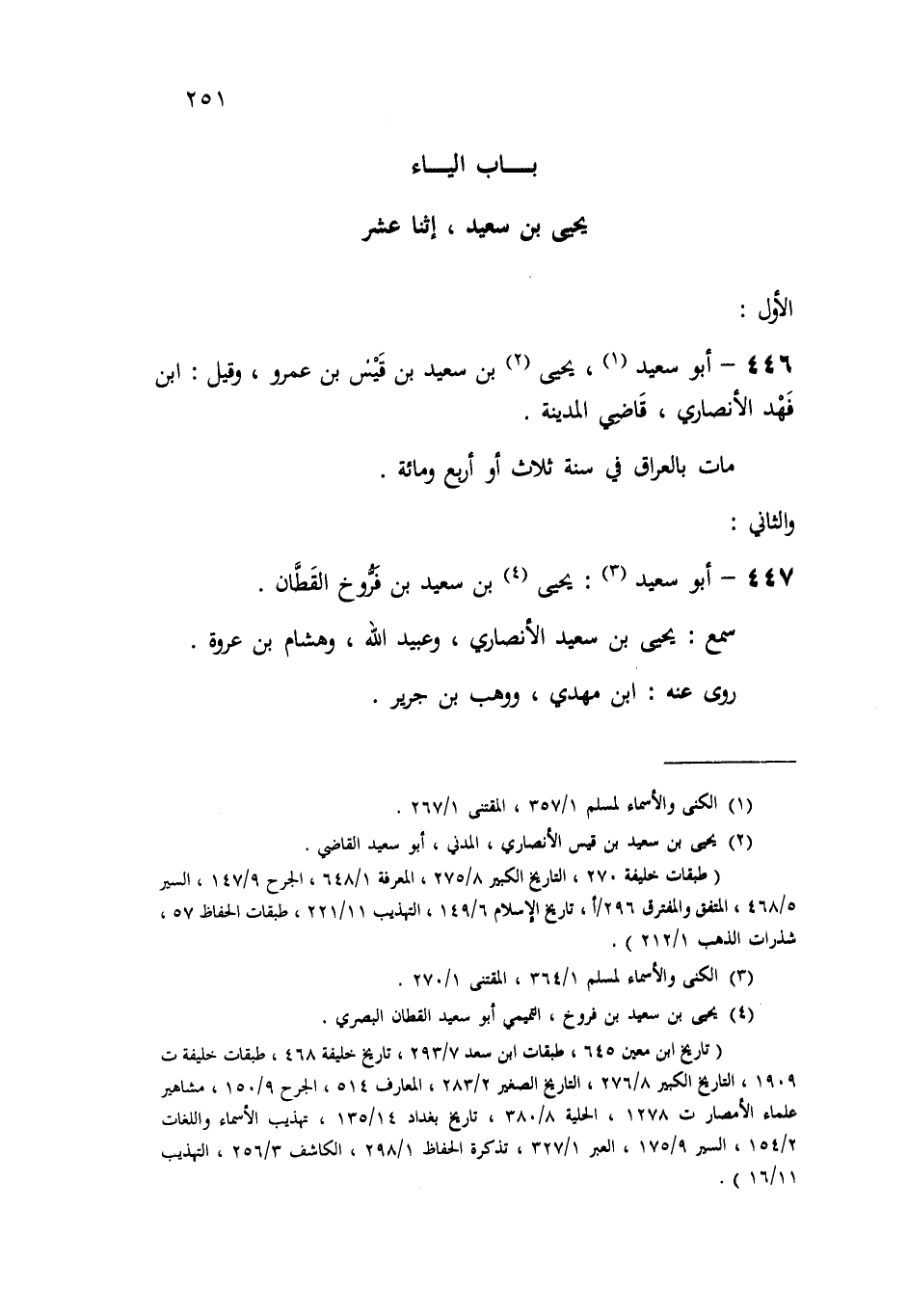 446 - أَبُو سعيد يحيى بن سعيد بن قيس بن عَمْرو وَقيل ابْن فَهد الْأنْصَارِيّ قَاضِي الْمَدِينَة