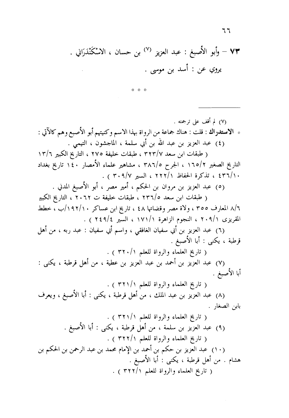 73 - وَأَبُو الْأَصْبَغ عبد العزيز بن حسان الإسْكَنْدراني