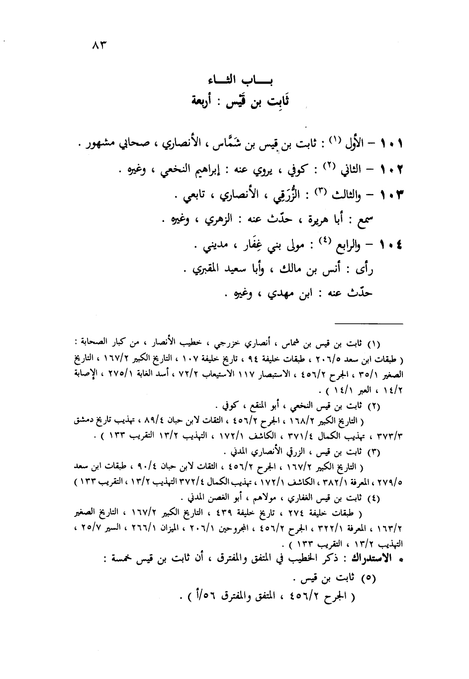 101 - الأول ثَابت بن قيس بن شماس الْأنْصَارِيّ صَحَابِيّ مَشْهُور