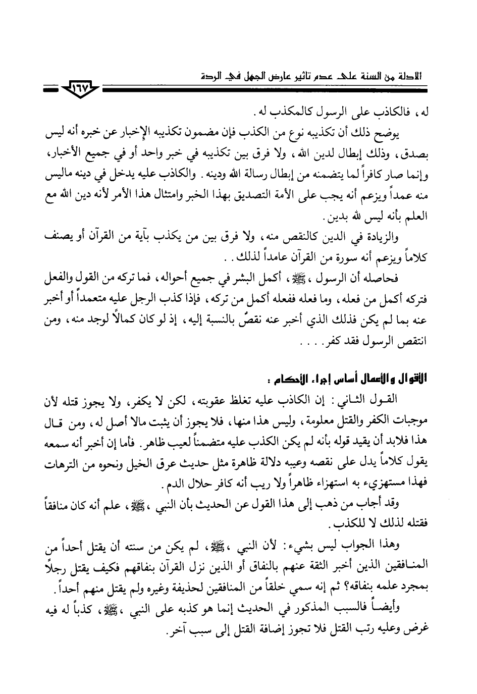 وأيضاً فالسبب المذكور في الحديث إنما هو كذبه على النبي، صلى الله عليه وسلم، كذباً له فيه غرض وعليه رتب القتل فلا تجوز إضافة القتل إلى سبب آخر.