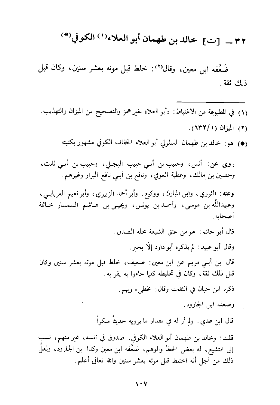 32 -[ت] خالد بن طهمان أبو العلاء (1) الكوفي