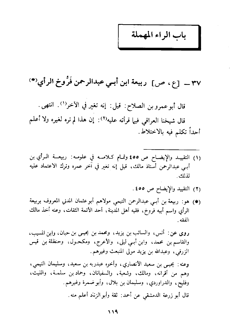 37 -[ع ص] ربيعة ابن أبي عبد الرحمن فروخ الرأي