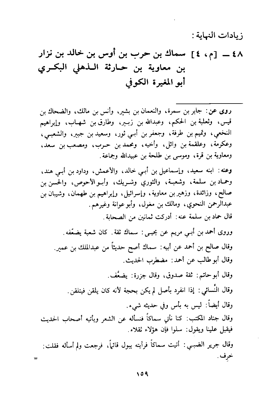 48 -[م 4] سماك بن حرب بن أوس بن خالد بن نزار بن معاوية بن حارثة الذهلي البكري أبو المغيرة الكوفي