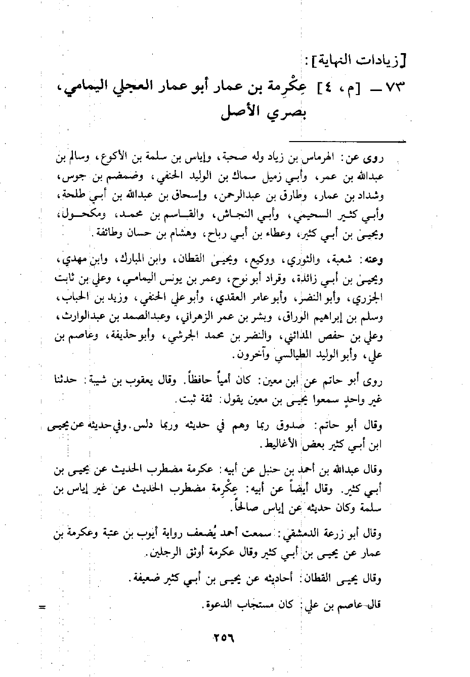 73 -[م 4] عكرمة بن عمار أبو عمار العجلي اليمامي بصري الأصل