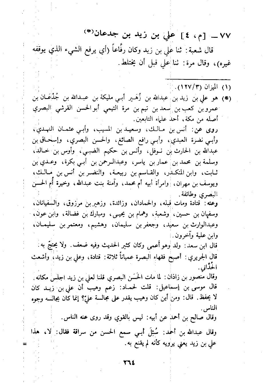 قال شعبة ثنا علي بن زيد وكان رفَّاعا (أي يرفع الشيء الذي يوقفه غيره) وقال مرة ثنا علي قبل أن يختلط