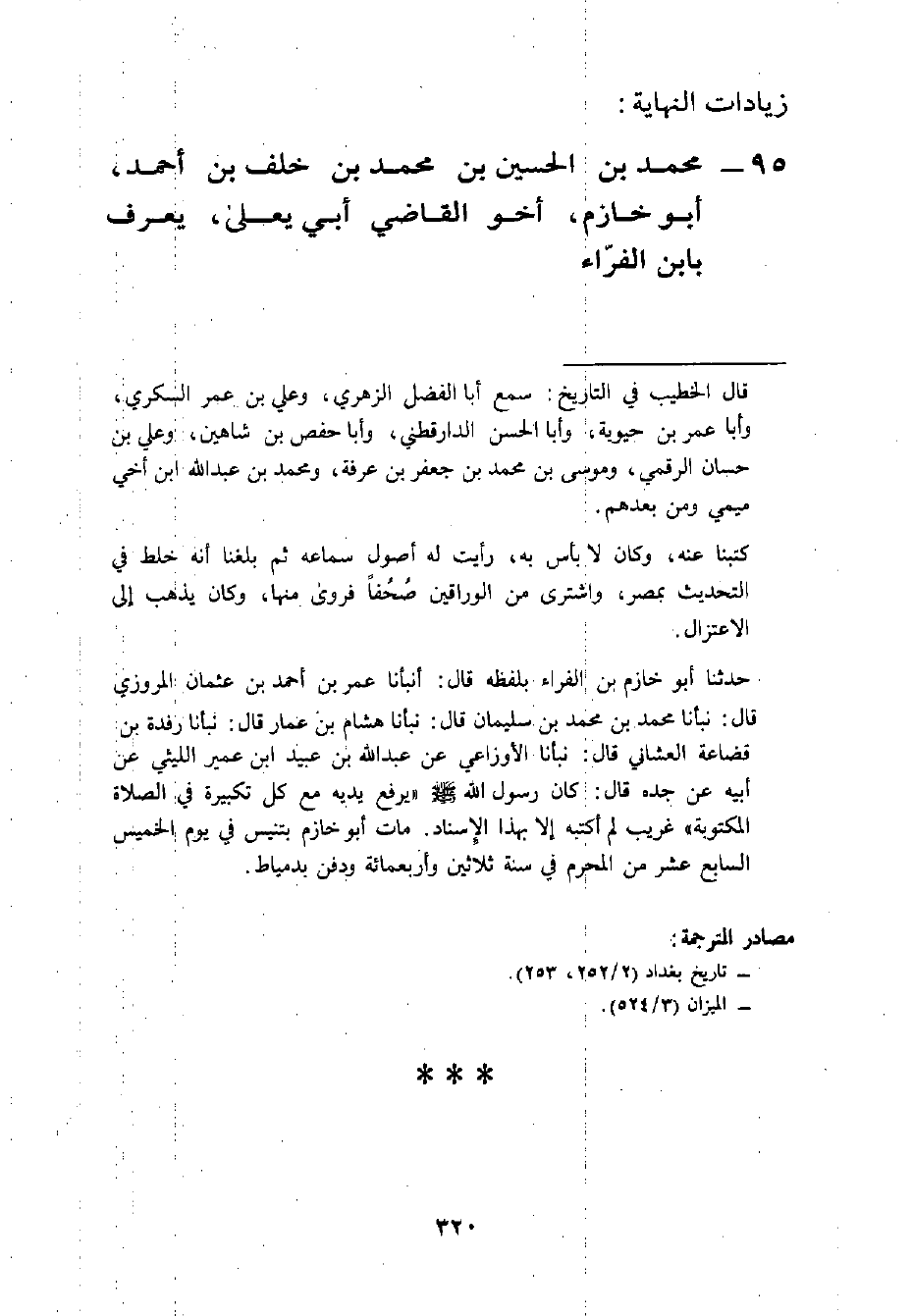 95 - محمد بن الحسين بن محمد بن خلف بن أحمد أبو خازم أخو القاضي أبي يعلى يعرف بابن الفراء