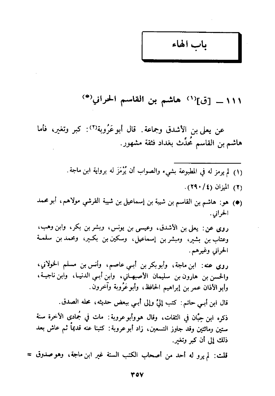 عن يعلى بن الأشدق وجماعة قال أبو عروبة كبر وتغير فأما هاشم بن القاسم محدث بغداد فثقة مشهور
