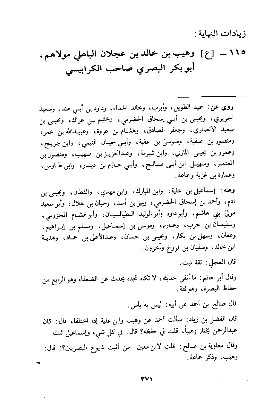115 -[ع] وهيب بن خالد بن عجلان الباهلي مولاهم أبو بكر البصري صاحب الكرابيسي