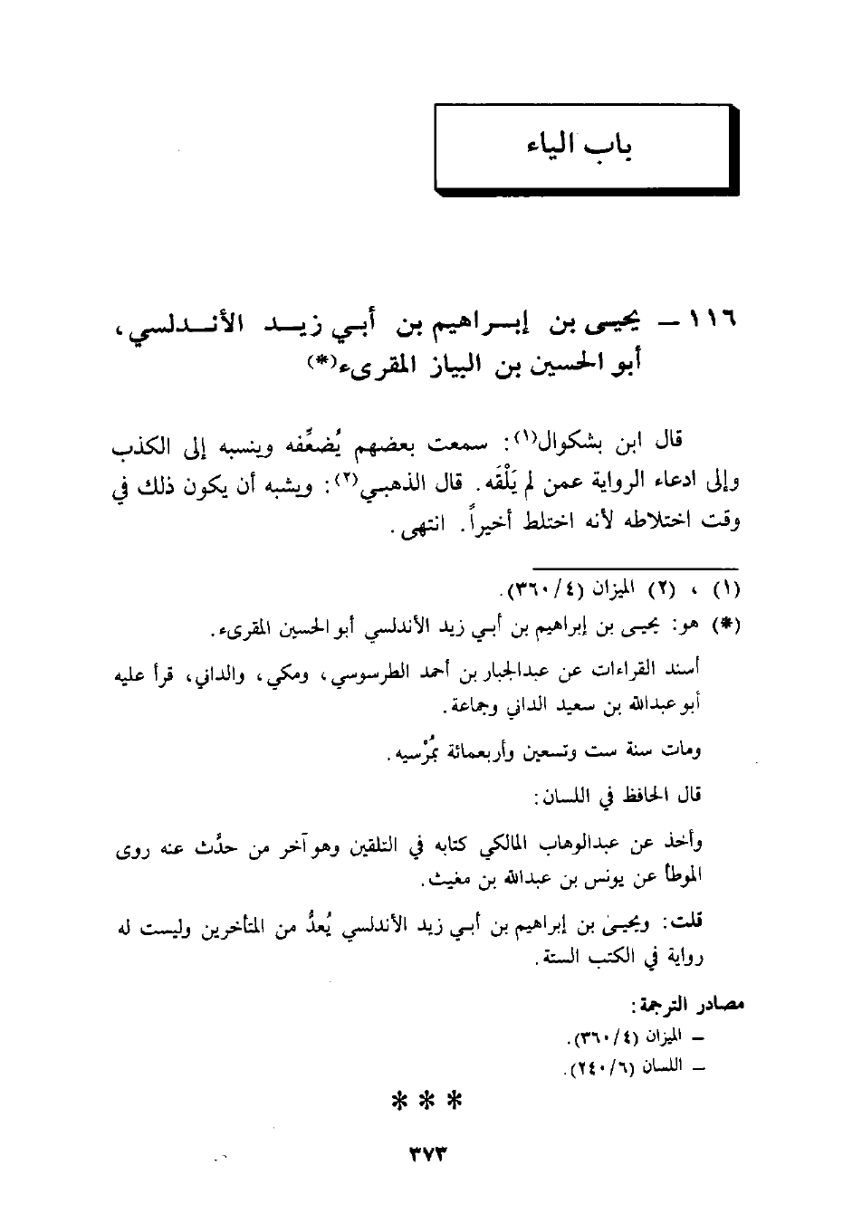 116 - يحيى بن إبراهيم بن أبي زيد الأندلسي أبو الحسين بن البياز المقرىء