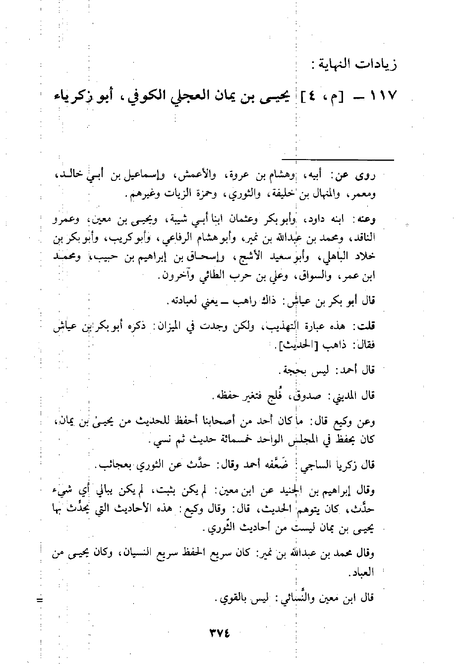 117 -[م 4] يحيى بن يمان العجلي الكوفي أبو زكرياء