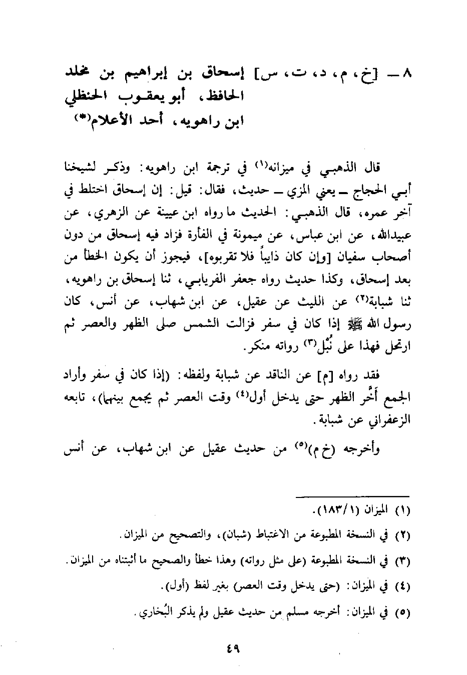 8 -[خ م د ت س] إسحاق بن إبراهيم بن مخلد الحافظ أبو يعقوب الحنظلي ابن راهويه أحد الأعلام
