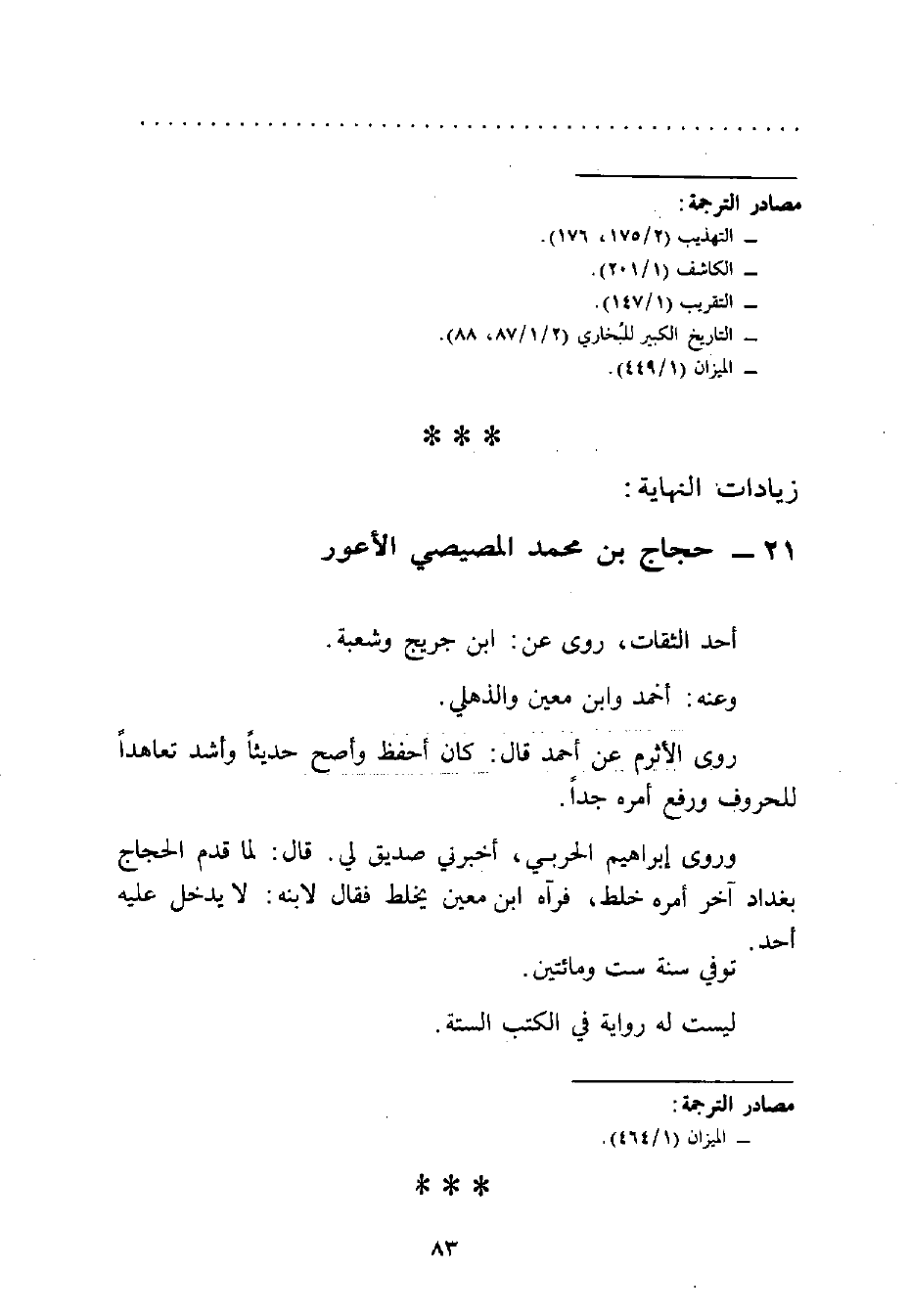 ورى إبراهيم الحربي، أخبرني صديق لي. قال: لما قدم الحجاج بغداد آخر أمره خلط، فرآه ابن معين يخلط، فقال لابنه: لا يدخل عليه أحد.