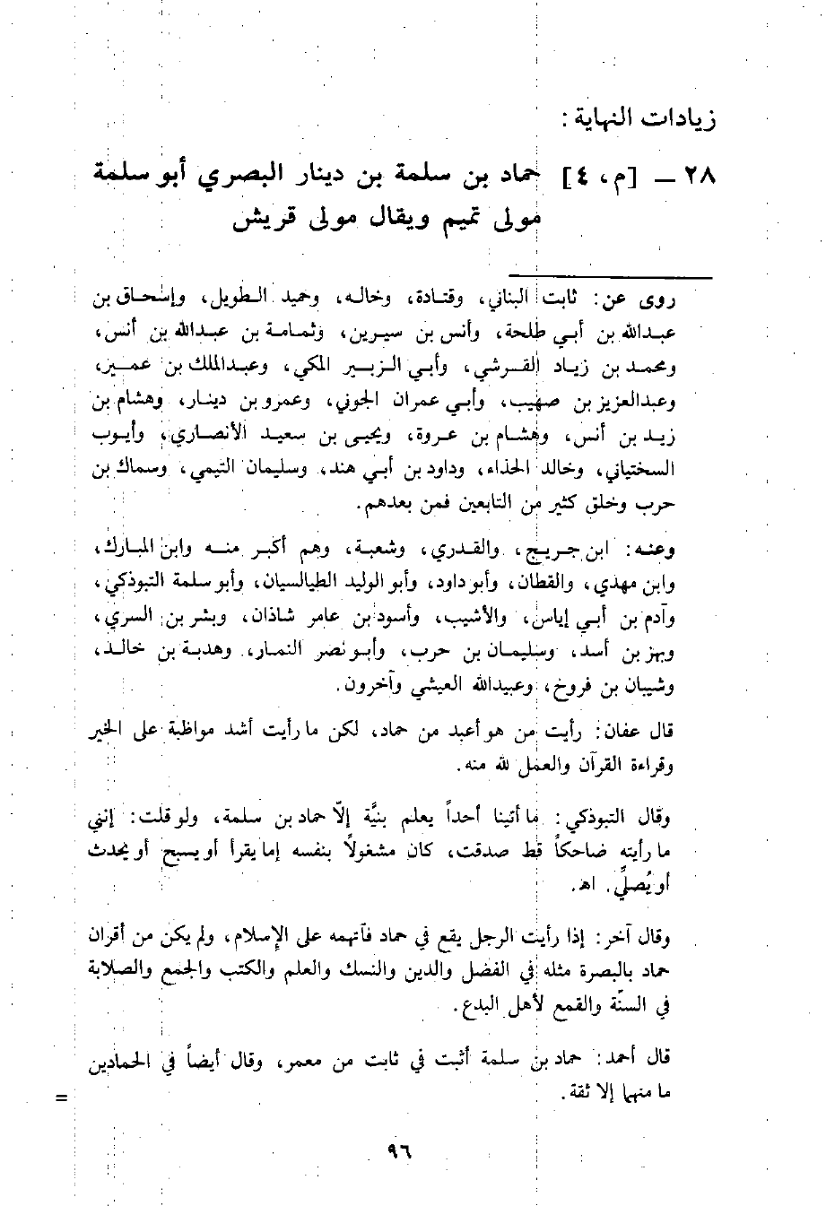 28 -[م 4] حماد بن سلمة بن دينار البصري أبو سلمة مولى تميم ويقال مولى قريش