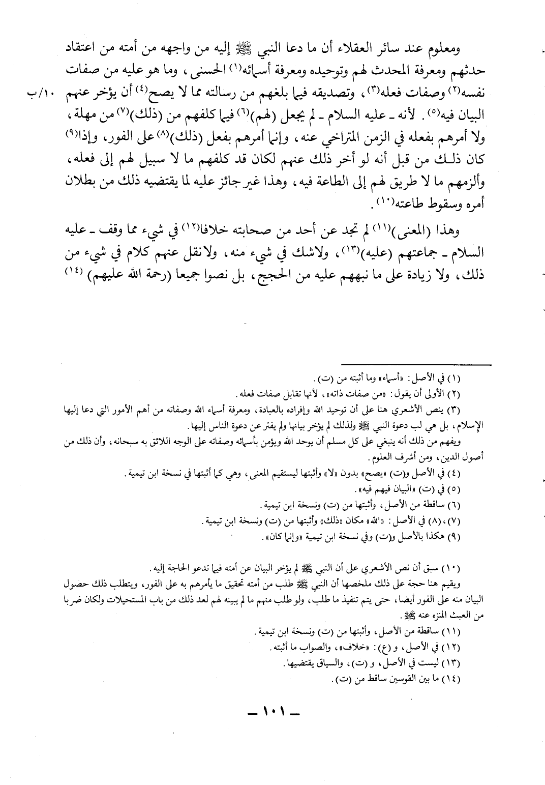 10 سبق أن نص الأشعري على أن النبي صلى الله عليه وسلم لم يؤخر البيان عن أمته فيما تدعو الحاجة إليه. ويقيم هنا حجة على ذلك ملخصها: أن النبي صلى الله عليه وسلم طلب من أمته تحقيق ما يأمرهم به على الفور، ويتطلب ذلك حصول البيان منه على الفور أيضاً، حتى يتم تنفيذ ما طلب، ولو طلب منهم ما لم يبينه لهم لعد ذلك من باب المستحيلات ولكان ضرباً من العبث المنزه عنه صلى الله عليه وسلم.