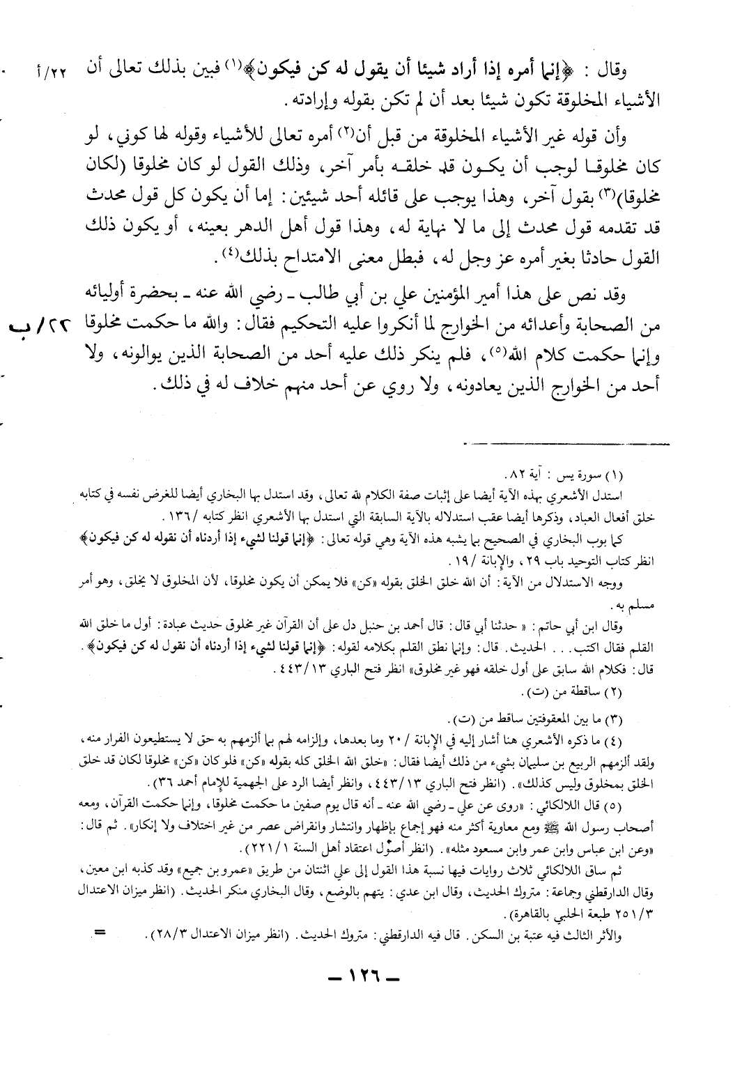 كما بوب البخاري في الصحيح بما يشبه هذه الآية وهي قوله تعالى: {إِنَّمَا قَوْلُنَا لِشَيْءٍ إِذَا أَرَدْنَاهُ أَنْ نَقُولَ لَهُ كُنْ فَيَكُونُ} انظر كتاب التوحيد باب 29، والإبانة ص19.