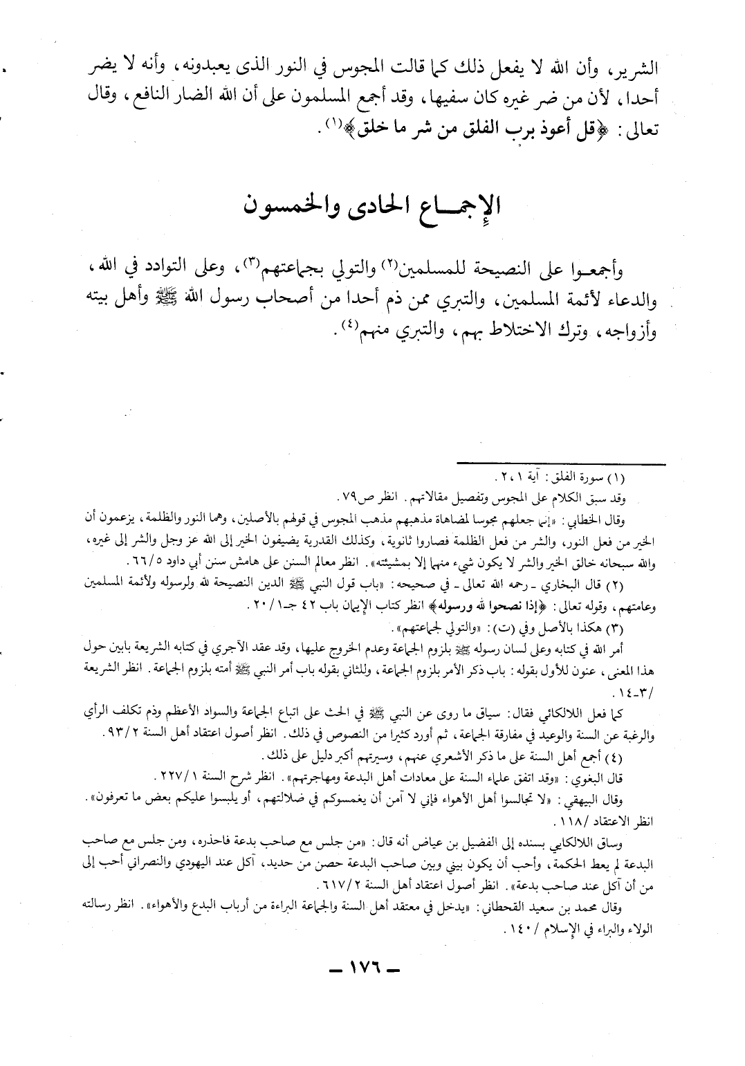 4 أجمع أهل السنة على ما ذكر الأشعري عنهم، وسيرتهم أكبر دليل على ذلك.