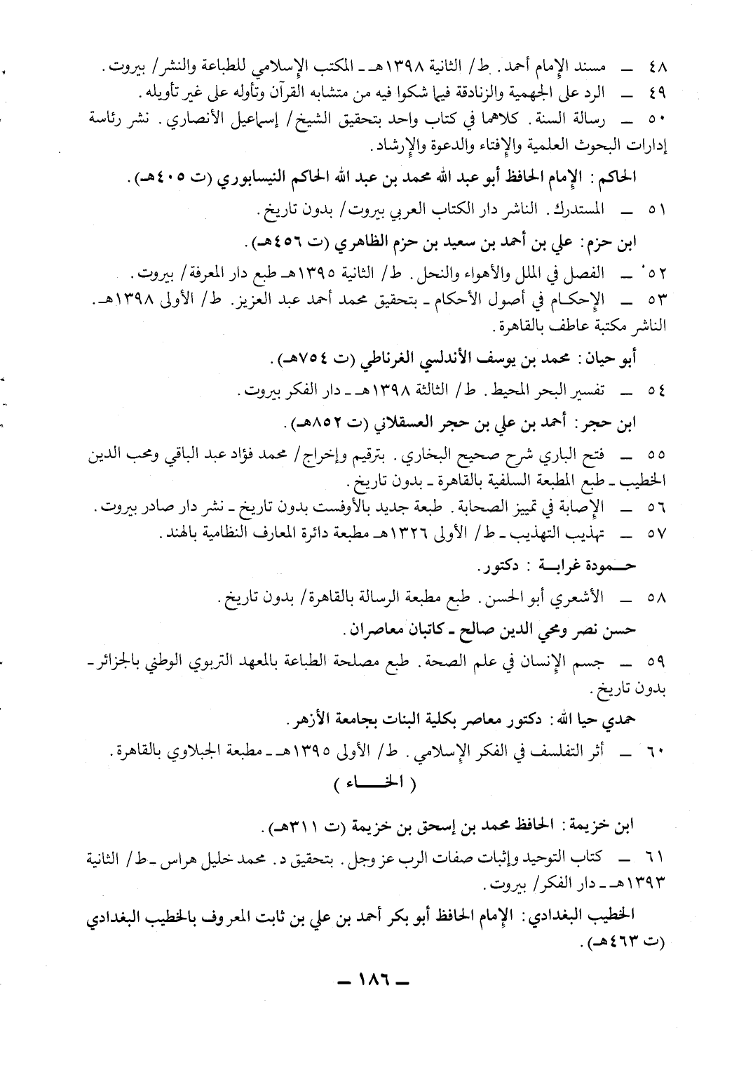 الفصل في الملل والأهواء والنحل. ط/ الثانية 1395هـ طبع دار المعرفة / بيروت.