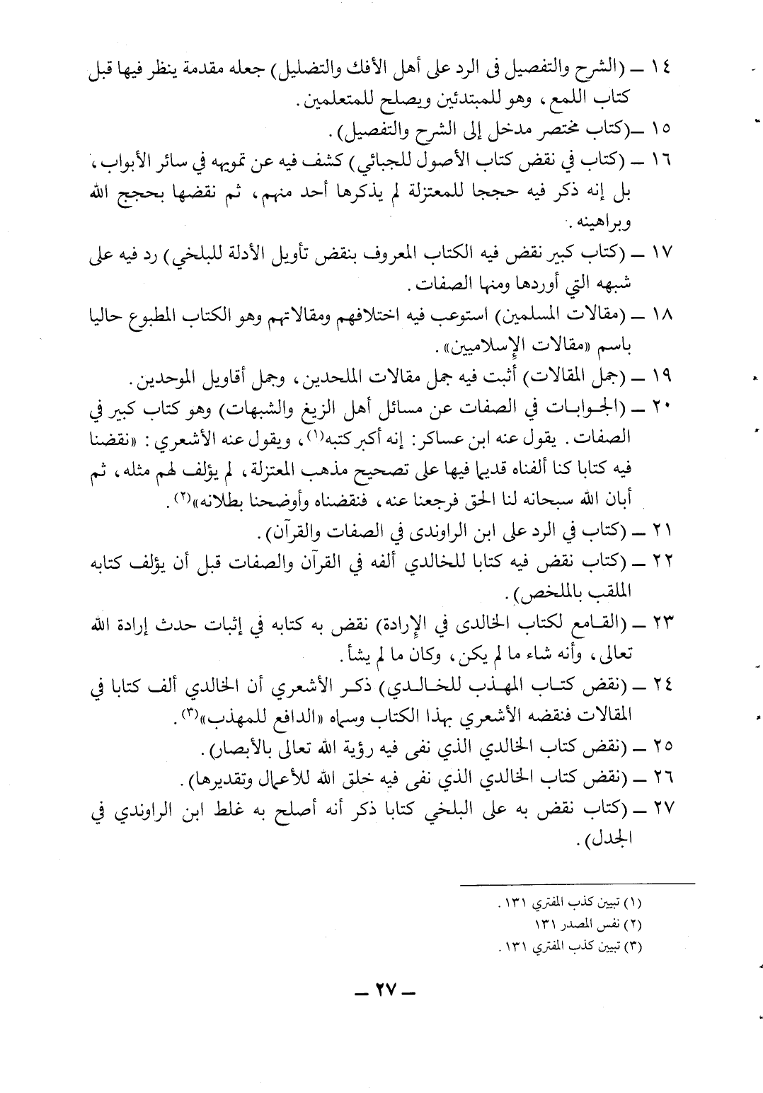 21- (كتاب في الرد على ابن الراوندي في الصفات والقرآن) .