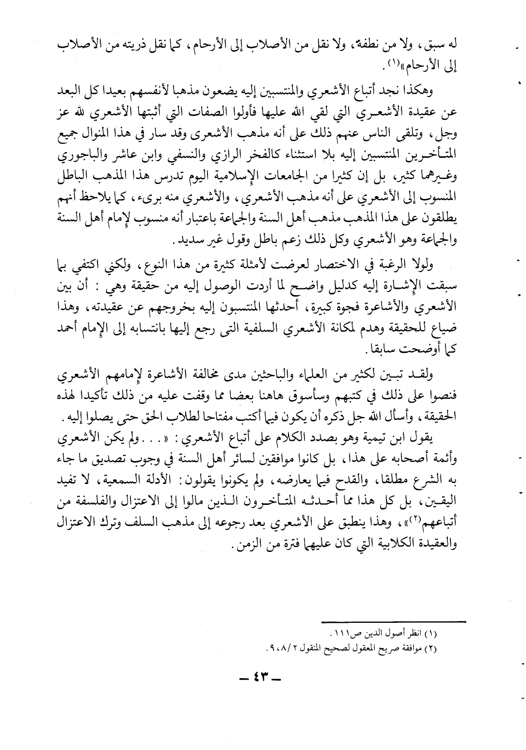 وهذا ينطبق على الأشعري بعد رجوعه إلى مذهب السلف وترك الاعتزال والعقيدة الكلابية التي كان عليهما فترة من الزمن.