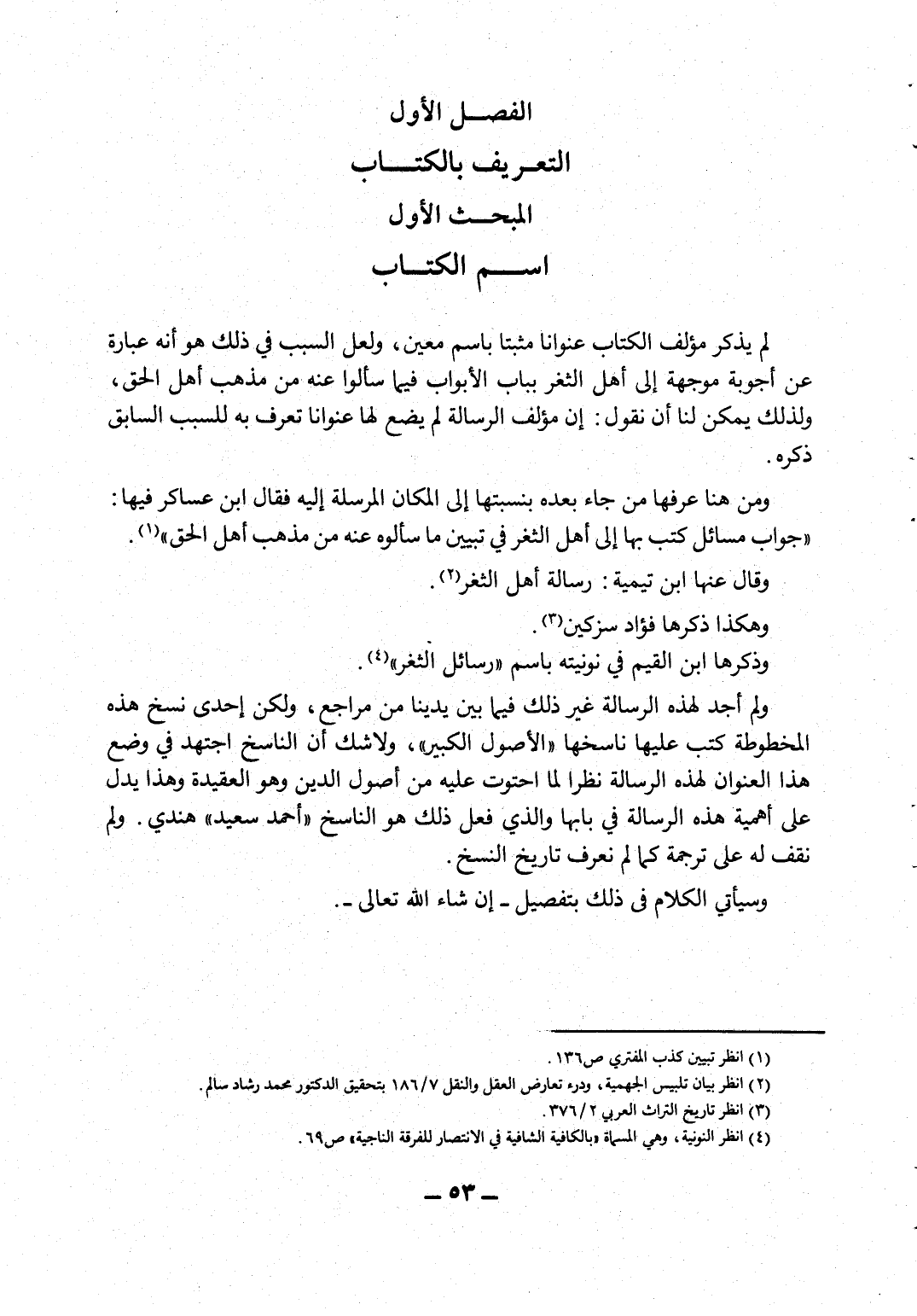 2 انظر: بيان تلبيس الجهمية، ودرء تعارض العقل والنقل 7/186 بتحقيق الدكتور محمد رشاد سالم.