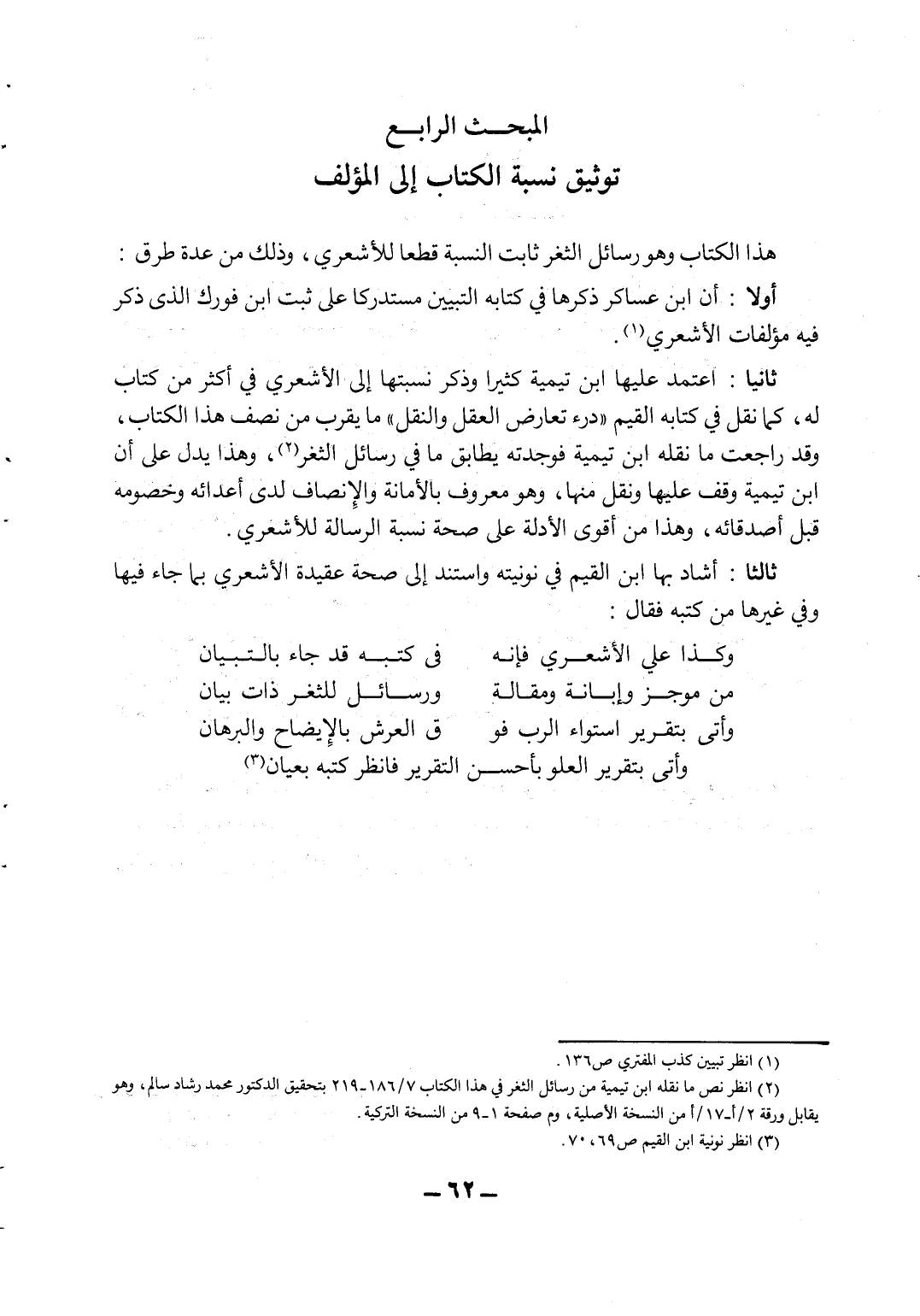 2 انظر: نص ما نقله ابن تيمية من رسائل الثغر في هذا الكتاب 7/186 - 219 بتحقيق الدكتور محمد رشاد سالم، وهو يقابل ورقة 2/ أ - 17/ أمن النسخة الأصلية، وصفحة 1 - 9 من النسخة التركية.