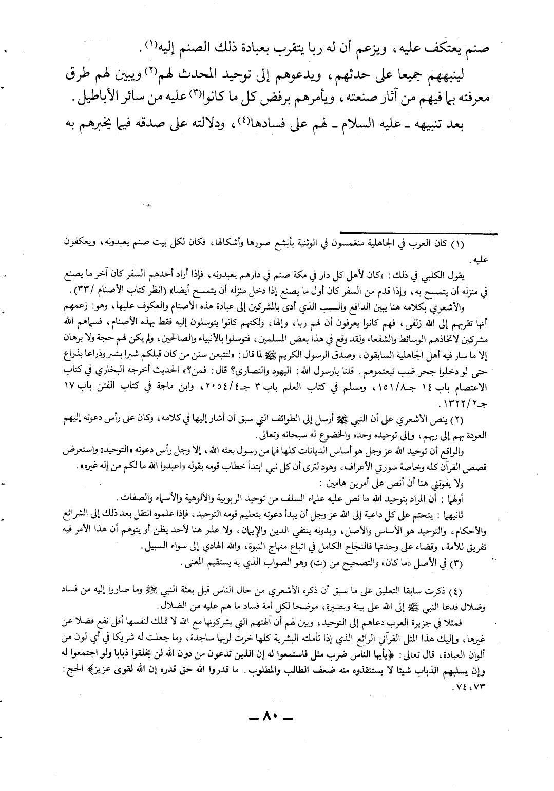 4 ذكرت سابقاً التعليق على ما سبق أن ذكره الأشعري من حال الناس قبل بعثة النبي صلى الله عليه وسلم وما صاروا إليه من فساد وضلال فدعا النبي صلى الله عليه وسلم إلى الله على بينة وبصيرة، موضحاً لكل أمة فساد ما هم عليه من الضلال.