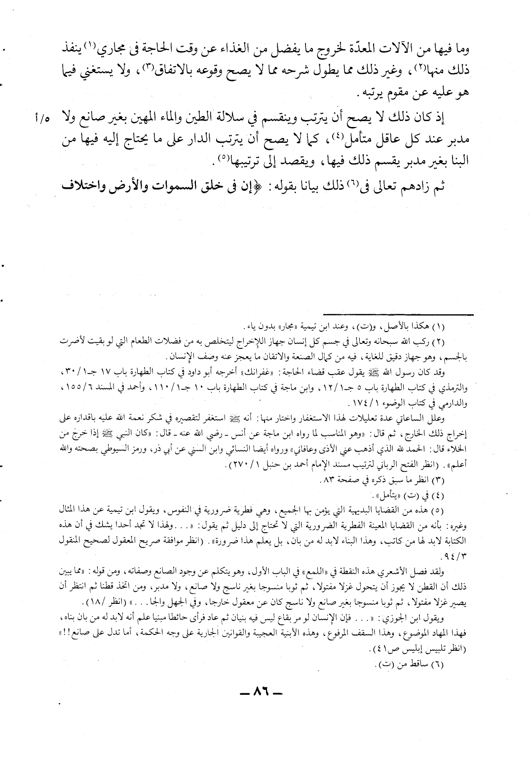 إذ كان ذلك لا يصح أن يترتب وينقسم في سلالة الطين والماء المهين بغير صانع ولا مدبر عند كل عاقل متأمل4، كما لا يصح أن يترتب الدار على ما يحتاج فيها من البناء بغير مدبر يقسم ذلك فيها، ويقصد إلى ترتيبها5.
