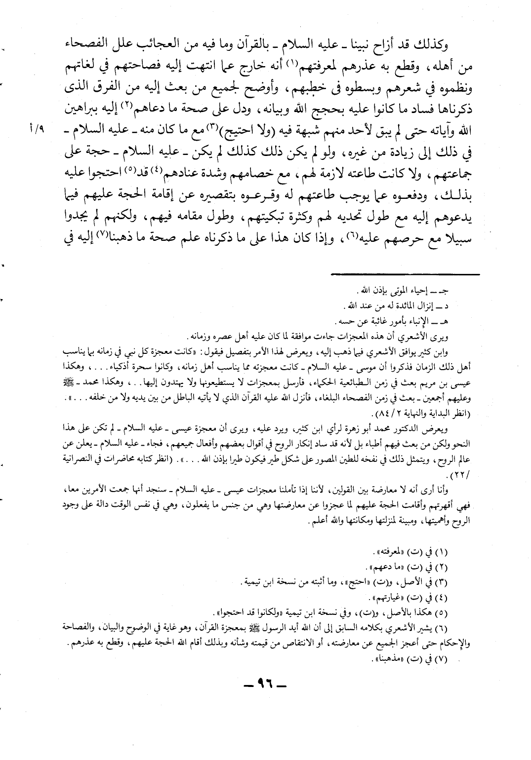 وكذلك أزاح نبيّنا عليه السلام بالقرآن وما فيه من العجائب علل الفصحاء من أهله، وقطع به عذرهم لمعرفتهم1 أنه خارج عما انتهت إليه فصاحتهم في لغاتهم ونظموه في شعرهم وبسطوه في خطبهم، وأوضح لجميع من بعث إليه من الفرق الذي ذكرنا فساد ما كانوا عليه بحجج الله وبيانه، ودل على صحة ما دعاهم2 إليه ببراهين الله وآياته حتى لم يبق لأحد منهم شبهة فيه (ولا احتيج) 3 مع ما كان منه عليه السلام في ذلك إلى زيادة من غيره، ولو لم يكن ذلك كذلك لم يكن عليه السلام حجة على جماعتهم، ولا كانت طاعته لازمة لهم، مع خصامهم وشدة عنادهم4 قد5 احتجوا عليه بذلك، ودفعوه عما يوجب طاعتهم له وقرعوه بتقصيره عن إقامة الحجة عليهم فيما يدعوهم إليه مع طول تحديه لهم وكثرة تبكيتهم، وطول مقامه فيهم، ولكنهم لم يجدوا سبيلاً مع حرصهم عليه6، وإذا كان هذا على ما ذكرناه علم صحة ما ذهبنا7 إليه في