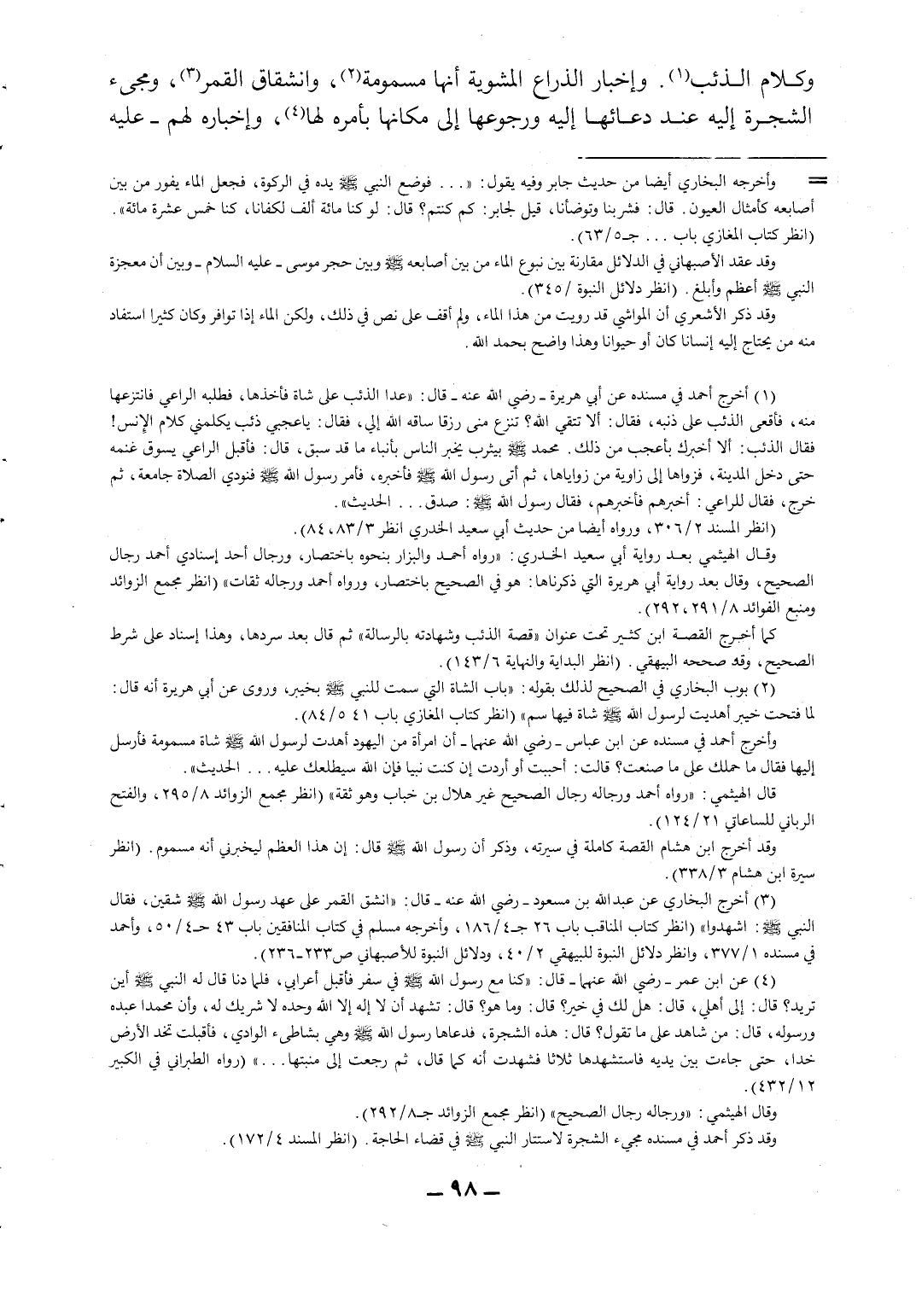 وكلام الذئب1، وإخبار الذراع المشوية أنها مسمومة2، وانشقاق القمر3، ومجيء الشجرة
