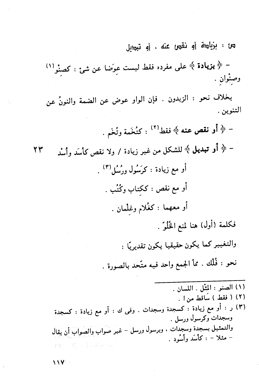 - {أو تبديل} للشكل من غير زيادة/ ولا نقص كأسد وأسد