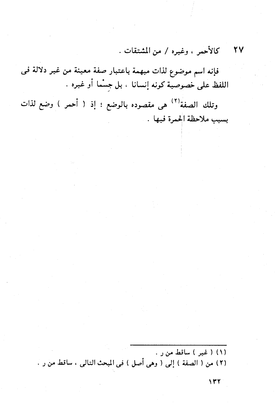 وتلك الصفة هي مقصوده بالوضع, إذ (أحمر) وضع لذات بسبب ملاحظة الحمرة فيها.