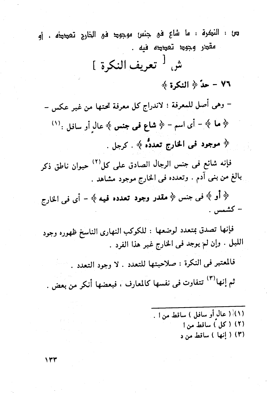 ص: النكرة: ما شاع في جنس موجود في الخارج تعدده, أو مقدر وجود تعدده فيه.