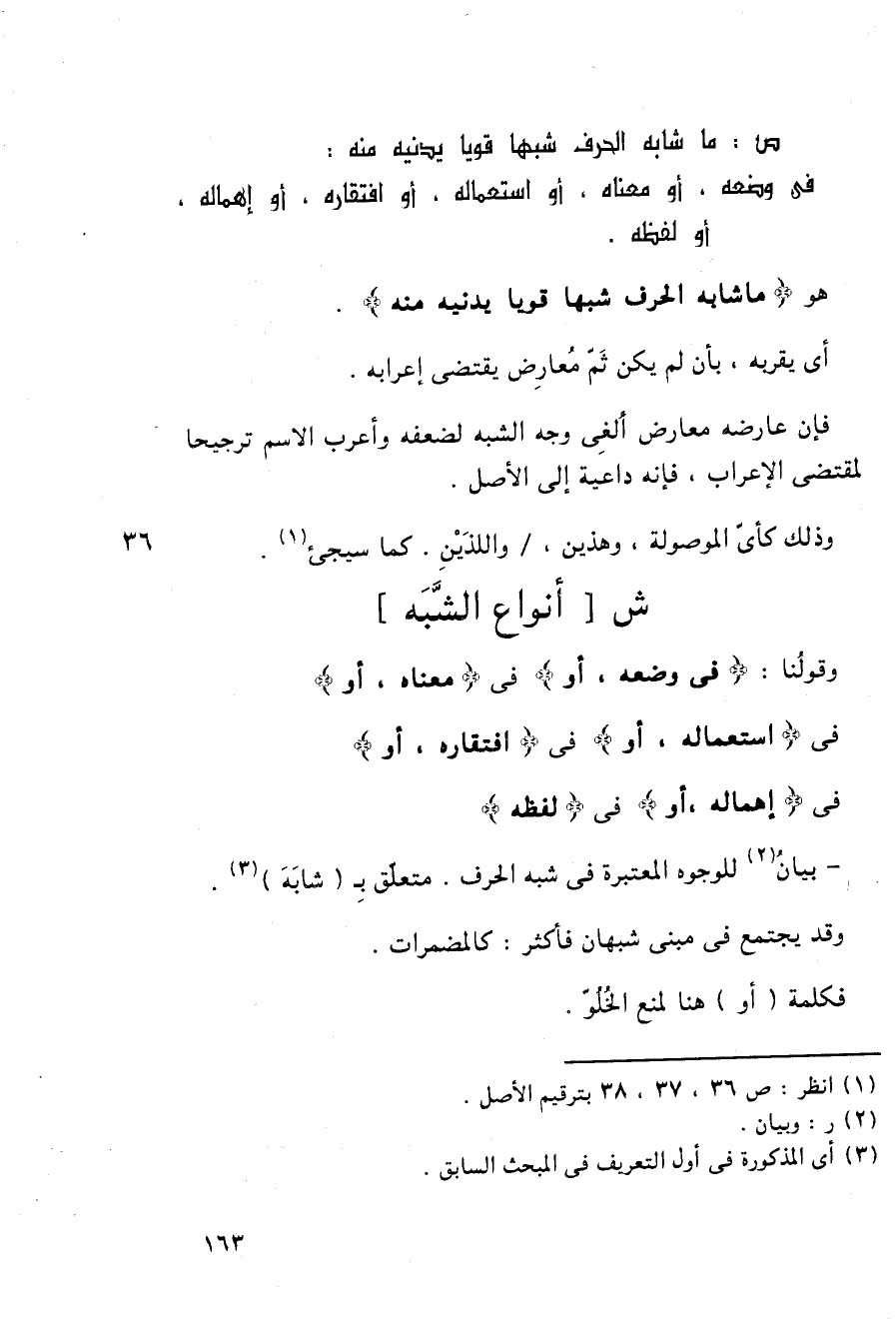 - بيان للوجوه المعتبرة في شبه الحرف. متعلق بـ (شابه).