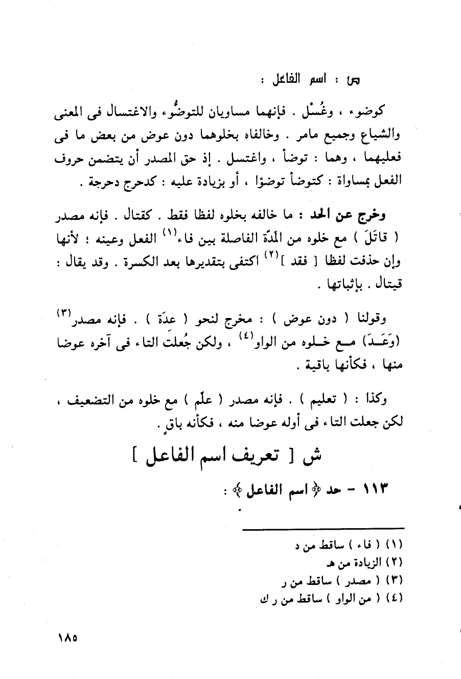 وقولنا (دون عوض): مخرج لنحو (عدة). فإنه مصدر (وعد) مع خلوه من الواو, ولكن جعلت التاء في آخره عوضا منها, فكأنها باقية.