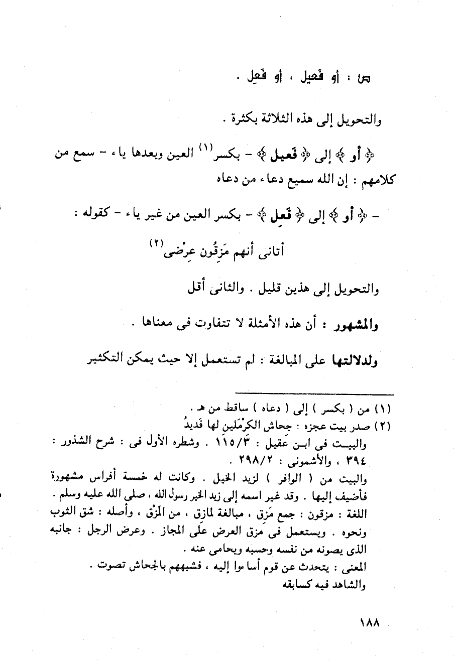 {أو} إلى {فعيل} - بكسر العين وبعدها ياء - سمع من كلامهم: إن الله سميع دعاء من دعاه