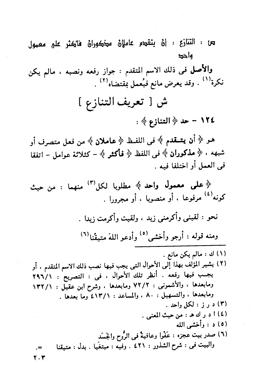 ص: التنازع: أن يتقدم عاملان مذكوران فأكثر على معمول واحد